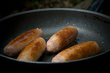 Generally, a shallower cooking vessel is used for pan frying than deep frying. Using a deep pan with a small amount of oil, butter or bacon grease does reduce spatter. A denser cooking vessel is better than a less dense pan because that mass will improve temperature regulation. An electric skillet can be used analogously to an electric deep fryer and many of these devices have a thermostat to keep the liquid (in this case, oil) at the desired temperature. The fastest and best way to pan fry is to flip the cooked item very often, about every 15–30 seconds. This will over cook the outside less and get the center cooked faster. Cooking oil is plant, animal or synthetic fat used in frying, baking and other types of cooking. It is also used in food preparation and flavoring that doesn't involve heat, such as salad dressings and bread dips, and in this sense might be more accurately termed edible oil. Cooking oil is typically a liquid, although some oils that contain saturated fat, such as coconut oil, palm oil and palm kernel oil, are solid at room temperature.[1] Types of cooking oil include: olive oil, palm oil, soybean oil, canola oil (rapeseed oil), pumpkin seed oil, corn oil, sunflower oil, safflower oil, peanut oil, grape seed oil, sesame oil, argan oil, rice bran oil and other vegetable oils. Oil can be flavoured with aromatic foodstuffs such as herbs, chillies or garlic. The appropriate amount of fat as a component of daily food consumption is the topic of some controversy. Some fat is required in the diet, and fat (in the form of oil) is also essential in many types of cooking. The FDA recommends that 30% or fewer of calories consumed daily should be from fat.[2] Other nutritionists recommend that no more than 10% of a person's daily calories come from fat.[3] In extremely cold environments, a diet that is up to two-thirds fat is acceptable and can, in fact, be critical to survival